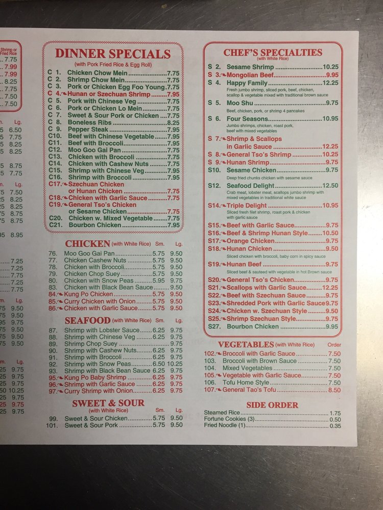 Top's China Restaurant in Hopewell, VA is a hidden gem for Chinese cuisine enthusiasts. Offering a variety of authentic dishes, including general tso's chicken and spare ribs, this restaurant has garnered praise for its flavorful and fresh food. Customers have commended the quick service and accuracy of orders, with many mentioning their long-standing loyalty to the establishment. The menu includes vegan-friendly options like mixed vegetables with white sauce, showcasing the restaurant's commitment to accommodating dietary preferences. With options for takeout, delivery, and catering, Top's China Restaurant caters to a wide range of dining needs. Whether you're looking for a quick bite or a full meal, this establishment promises a satisfying experience for all Chinese food lovers.